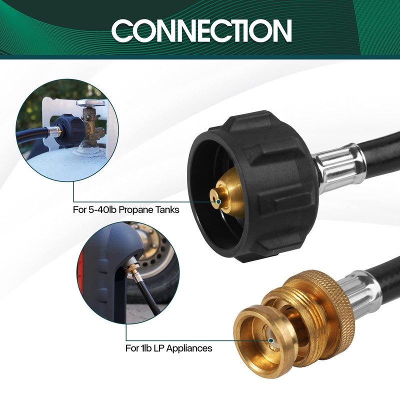 - La seguridad es lo primero: este adaptador de propano de mangueras LP de 1 a 20 libras está hecho por manguera de propano elastomérico de alta presión certificada por CSA, y el adaptador tiene una excelente conexión segura y durabilidad para mantener tu sistema más seguro