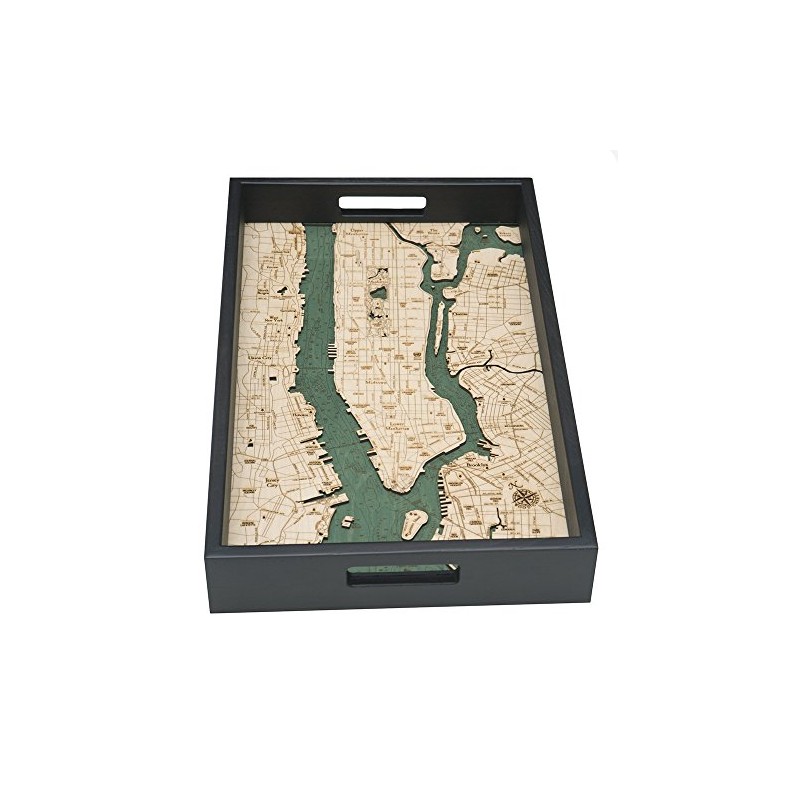 Woodchart's beautiful, single-depth layer serving tray featuring an engraved map of Manhattan.