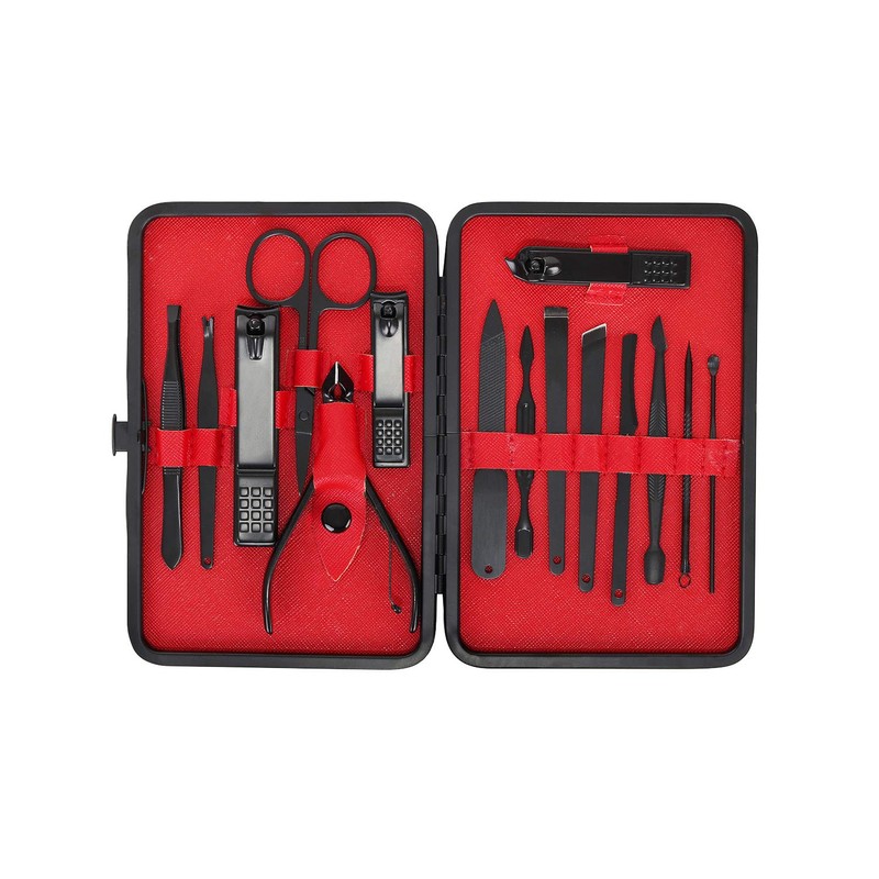 The set consists of 16 elements, elegant and durable design of each of the tools, together with the case allows for a long service life. It is also a great gift idea. Inside the case there is a separate space for each tool to keep order without losing it. The case is closed with a press stud closure and has an interesting black structure on the outside that will appeal to any woman.