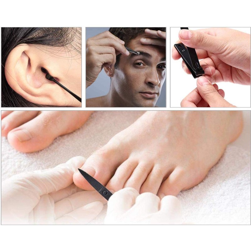 - 2 X Nail Clipper, 1 x Nail file, 1 x Eyebrow Trimmer, 1 x Tweezer, 1 x Ear Scoop, 1 x Nail Cleaning knife