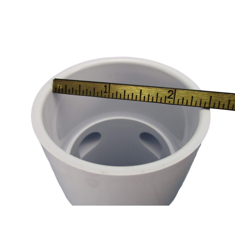 - Accepts 2" PVC Pipe Which emasures about 2 3/8" OD