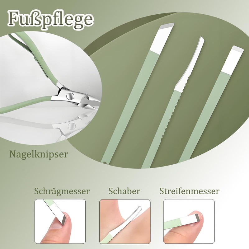 - Premium-Geschenkverpackung für jeden Anlass: Das edle Nagelpflege-Set (Farbe: Grün) kommt im hochwertigen Lederetui – perfekt als Weihnachts- oder Geburtstagsgeschenk. Inkl. 16 rostfreier Stahl Werkzeuge und praktischer Tragetasche, ein stilvolles Präsent für Gesundheitsbewusste und Reisende.
