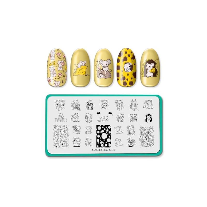 Maniology Tiny Whiskers Nail Stamping Plate, Adorable Mouse Stamp Plates, Playful Whiskered Mice Manicure Designs, Springtime Critter DIY Patterns
