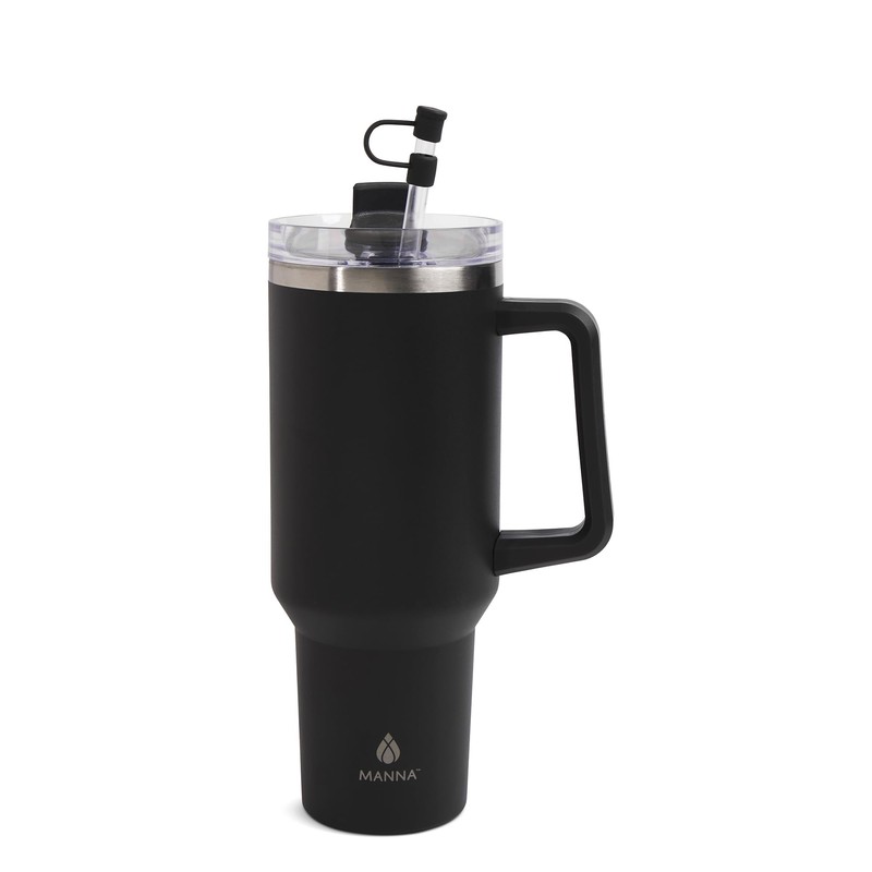 Manna Atlas Stainless Steel Tumbler with Silicone Straw Protector - 40 Oz - Charcoal