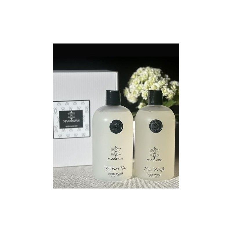 - This 2-pack BODY WASH SET includes two distinct and captivating fragrances. SEA DRIFT offers a refreshing blend of sea salt, sage, and driftwood, evoking the serenity of coastal breezes and ocean waves. WHITE TEA features a sophisticated combination of white tea, cedarwood, lily, and sandalwood, delivering a tranquil and uplifting aroma that transforms your daily routine into a spa-like experience.
