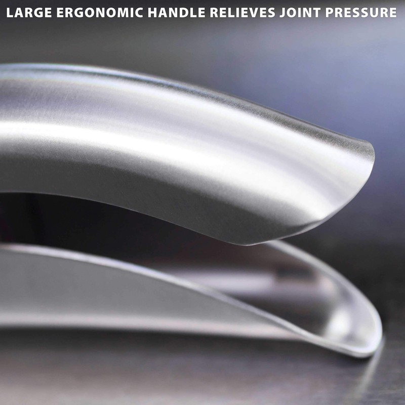- Extra wide ergonomic handles provide unmatched comfort and stability. Utilizing a greater surface area to collect energy from your hand and transfer it efficiently to the crusher, this advanced kitchen tool from MANNKITCHEN puts pressure on the garlic instead of your joints.