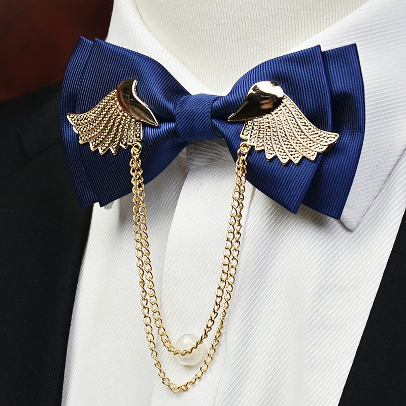 Manoble Men’s Tuxedo Adjustable Metal Golden Wings Two Layer Neck Bowtie Bow Tie (Navy Blue)