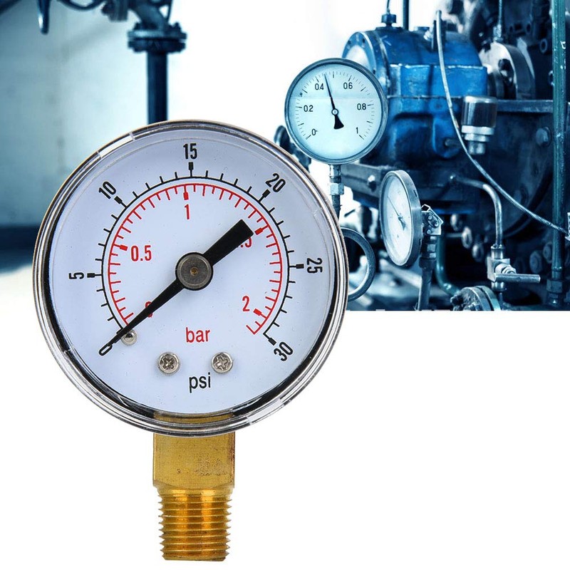 Manómetro Mecánico BSPT de 1/8 Pulgadas, Manómetro de Agua de Doble Escala, Manómetro de Aire, Montaje Inferior para Aire, Aceite y Agua (0-30 psi, 0-2 bar)