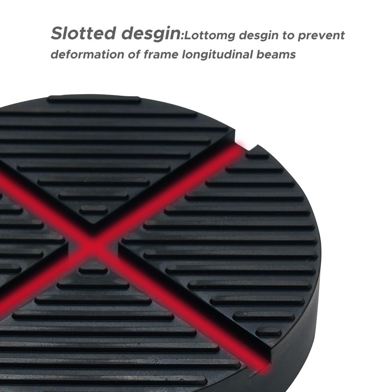 - Vehicle - Friendly Protection and Warranty:Functioning as a jack support cushioning pressure pad, it safeguards your car's undercarriage metal jack point railing. The soft rubber surface won't scratch painted or coated chassis parts. Additionally, we offer a satisfaction warranty. If you're not satisfied, simply contact us for help. Just a small note: as it's newly factory - produced with heavy - duty rubber, it may have a slight rubber smell. We recommend placing it in a well - ventilated area for a while.