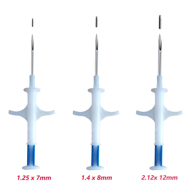 2.12X12mm Microchip ,Yes, the needle is large, Because it has to deliver the chip , But Sharp enough ,if you know how to Insert as Nurse, your Pet will not Flinch.