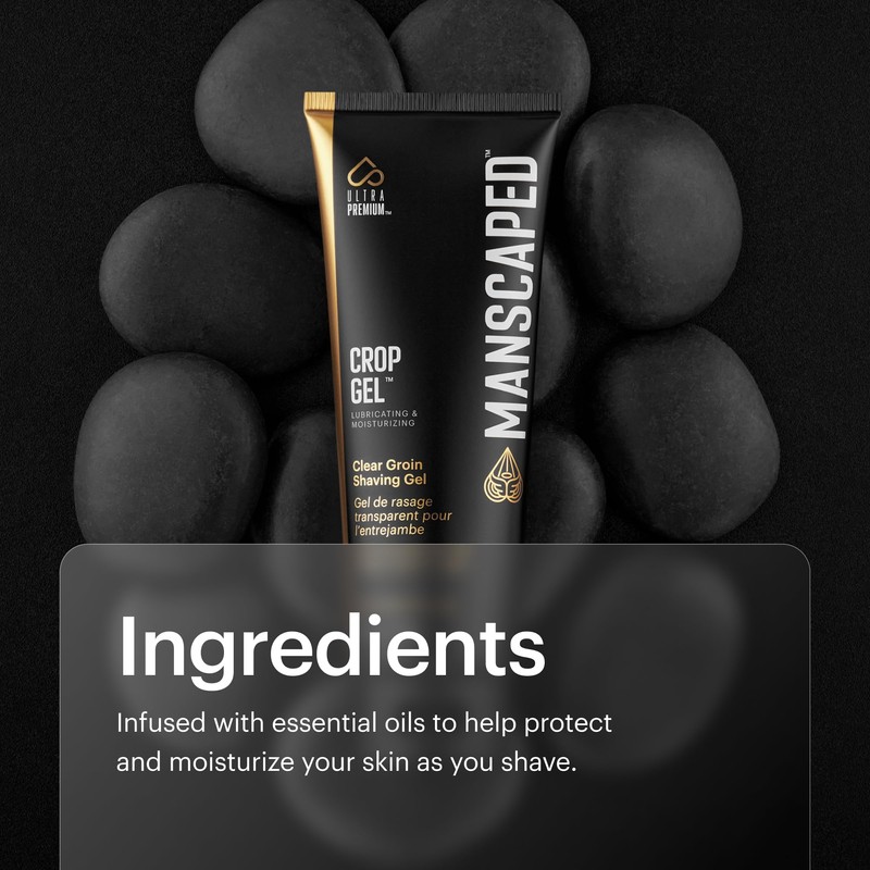 - CROP GEL: is a unique clear ball shaving gel specially formulated for the groin area so you can see what you’re shaving. Mildly important.