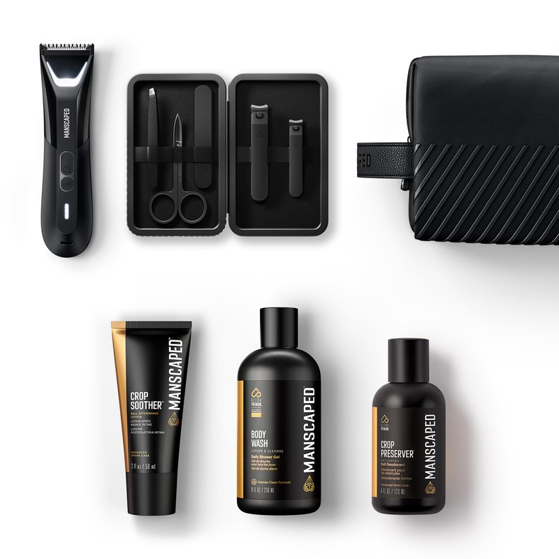 MANSCAPED® The Premier Package 5.0 Ultra, with The Lawn Mower® 5.0 Ultra Men's Groin & Body Hair Trimmer, Shears 3.0, Crop Preserver® Ball Deodorant, Refined® Body Wash, Crop Soother™, Shed 2.0