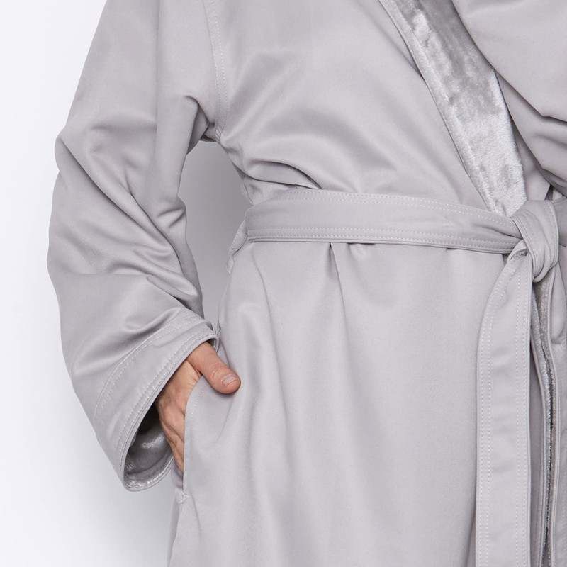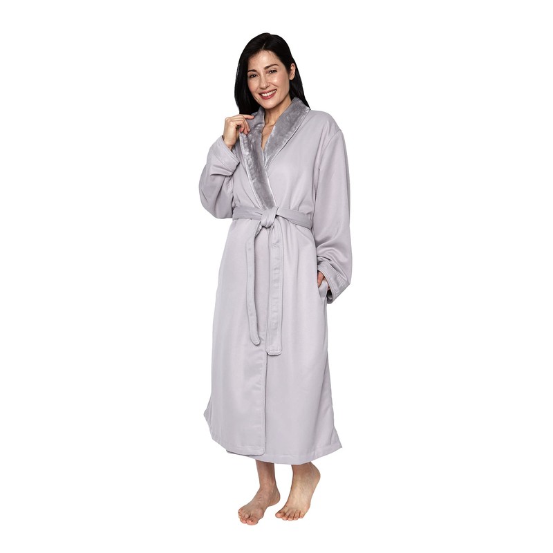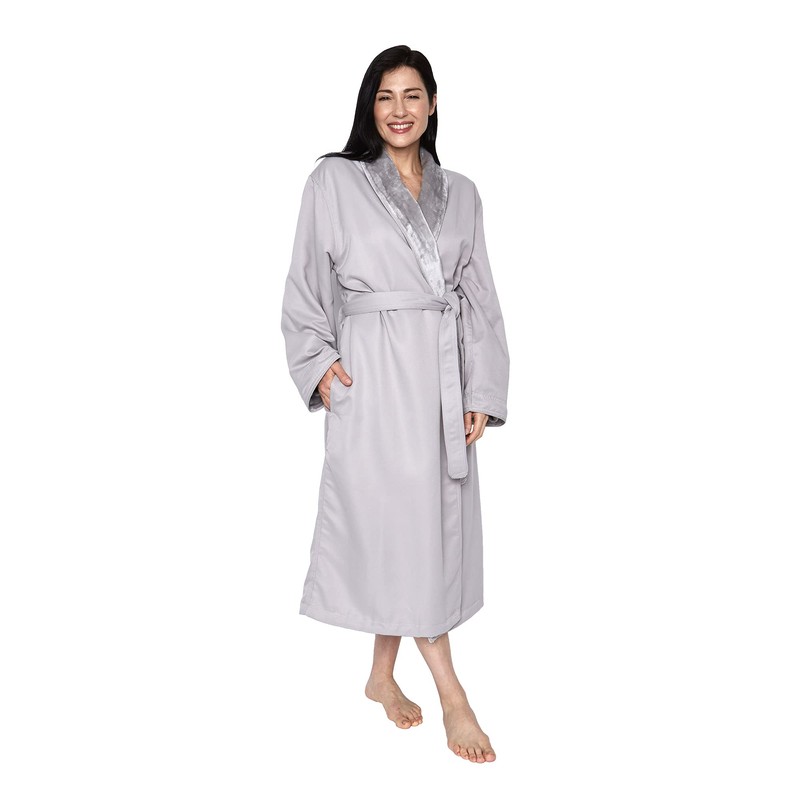 Mansfield, Unisex Spa Microfiber Shimmer Lined Shawl Collar Robe, Dove Grey, S/M