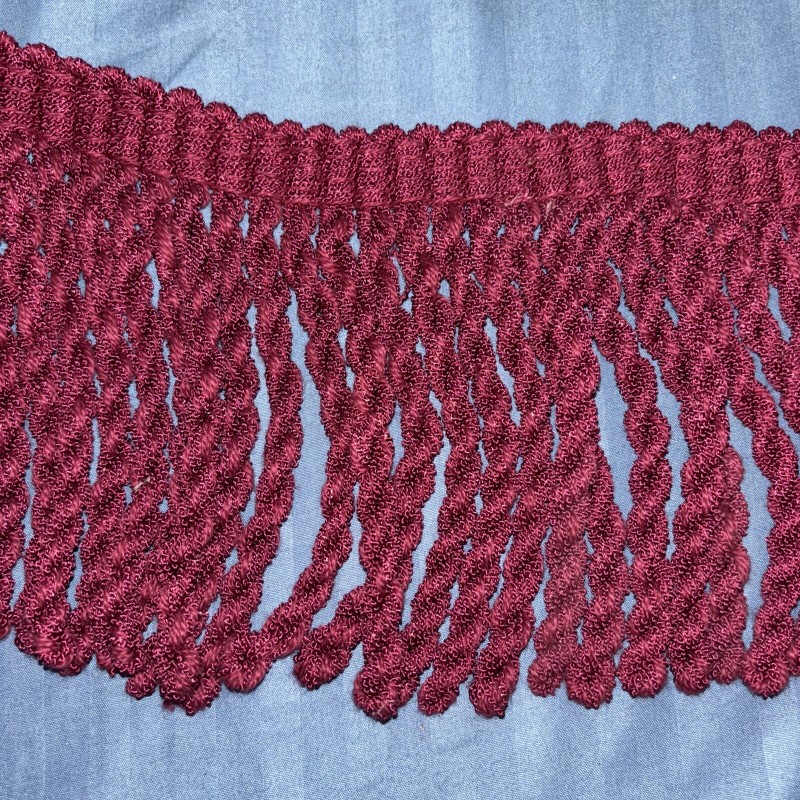 You are buying 5 yards of the long maroon fridge shown in the pictures. This is vintage New old stock in excellent condition. Multiple purchase will receive a discount and the trim be in a continuous piece. No damage dirt or dust. It came from factory that’s been closed. Please examine pictures for measurements and condition and check out my other listings for lots of trim and lace.