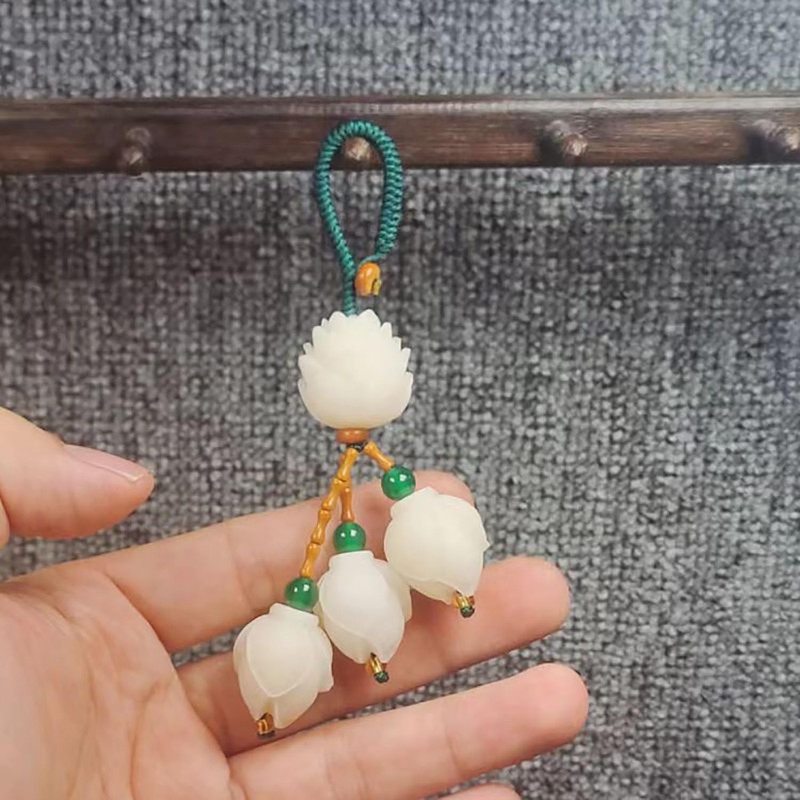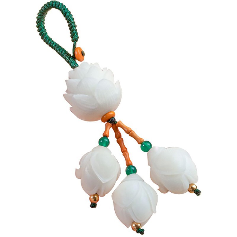 Mansiyuyee Hand Carved Lotus Flowers Keychain for Women Meaning Good Things Happying Buddhist Lucky Charms with Openable Knot