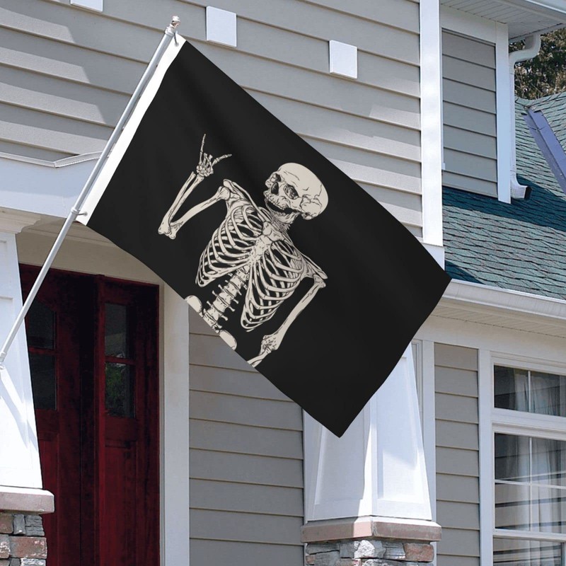 Mantaiyuan Rock and Roll Skeleton Skull Boho Hippie Double-sided Printed Flag 3x5 Ft, Garden Yard House Flags Greeting Banner, Indoor Outdoor Party Home Decor