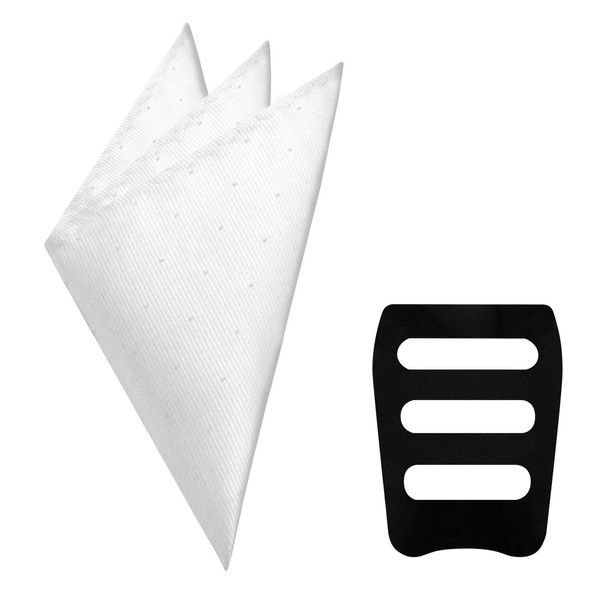 Mantieqingway Pocket Squares for Men, 8.66 Inches Polka Dots Mens Handkerchiefs with Pocket Square Holder for Suit, Daily, White, 8.66Inches