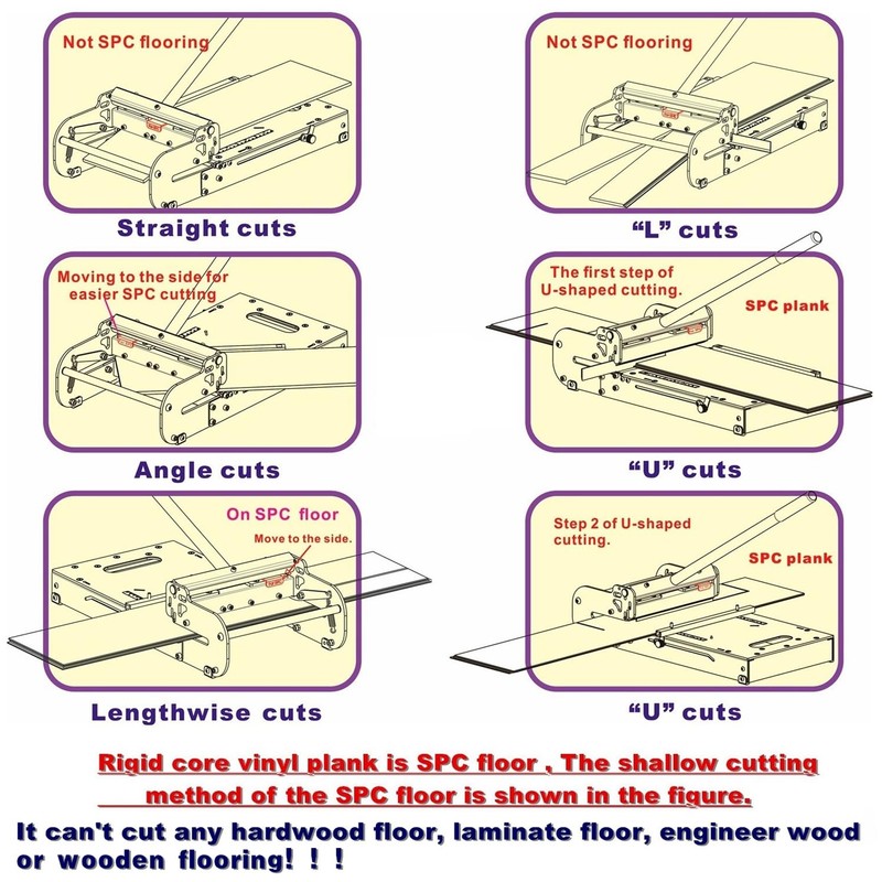 - Design for cutting LVP, WPC, SPC, LVT, VCT, PVC, Vinyl Plank Flooring. Cutting unapproved materials will void warranty.No dust, No noise, No electricity needed, Easy and Professional cutting vinyl floor, Save time. It cannot cut laminate flooring and other hardwoods;