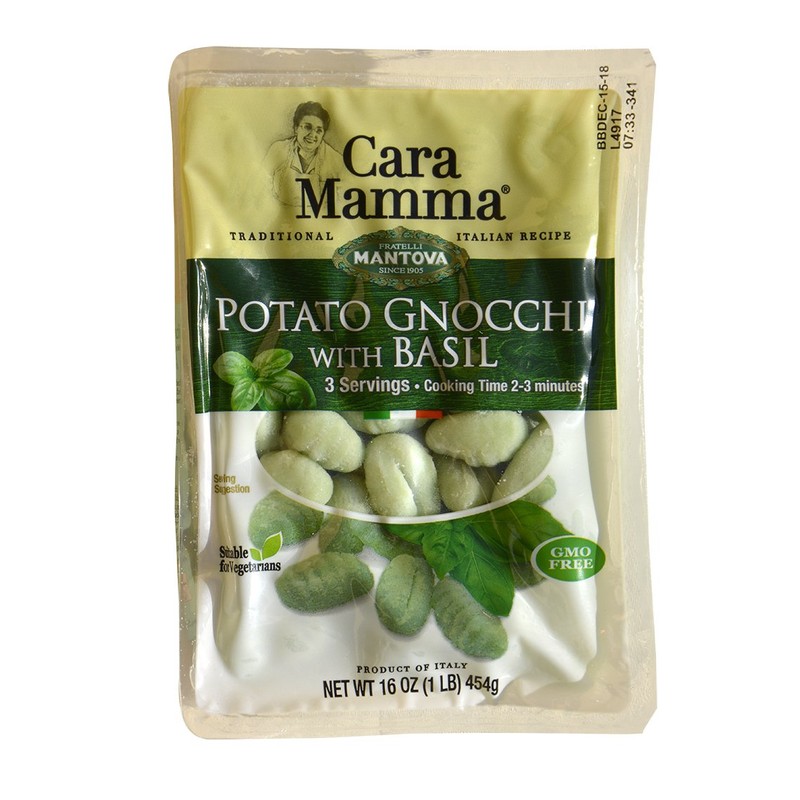 Mantova Cara Mamma Basil Potato Gnocchi (1 lb. Packs - Pack of 6) Imported from Italy