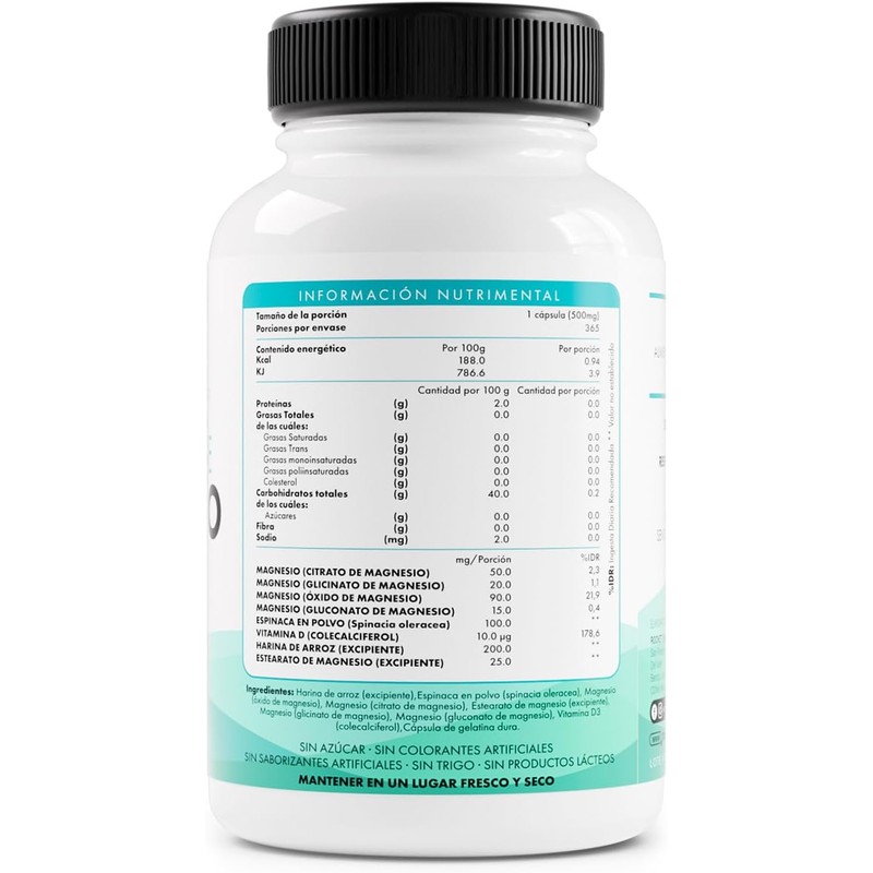 Mantra Nutrition COMPLEJO DE MAGNESIO 365 Cápsulas — Formuladas : Citrato de Magnesio Glicinato Magnesio Glu ato de Magensio y Óxido de Magnesio Mezcla de Magnesios Para Todo Un Año Calidad Premium
