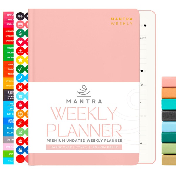 Mantra Planner 2024 Planner, Daily Journal & Gratitude Journal All-In-One with To Do List, Self Care Prompts & Habit Tracker - 7 x 10 - Pink
