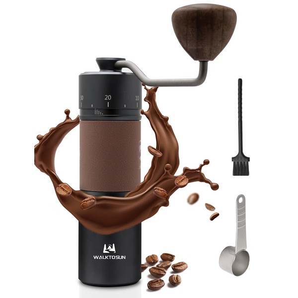 Manual Coffee Grinder, Portable Hand Stainless Steel Conical Burr Coffee Grinders, Adjustable Settings & Ergonomic handle, for Home Office Traveling Camping or Hiking, Black