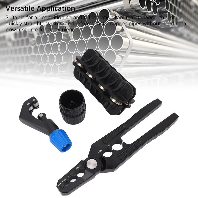 - Versatile Application: Suitable for air conditioning and refrigeration tool maintenance, this kit quickly straightens, cuts, and reforms metal copper pipes without needing a power source for convenience.