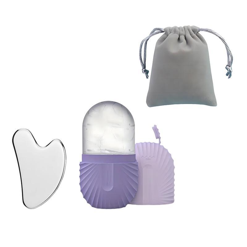 Manual Facial Massage Tool Kit, Stainless Steel Face Massage Board & Ice Roller & Storage Pouch, Multi-use Facial Massage Accessories for Soothing Skin