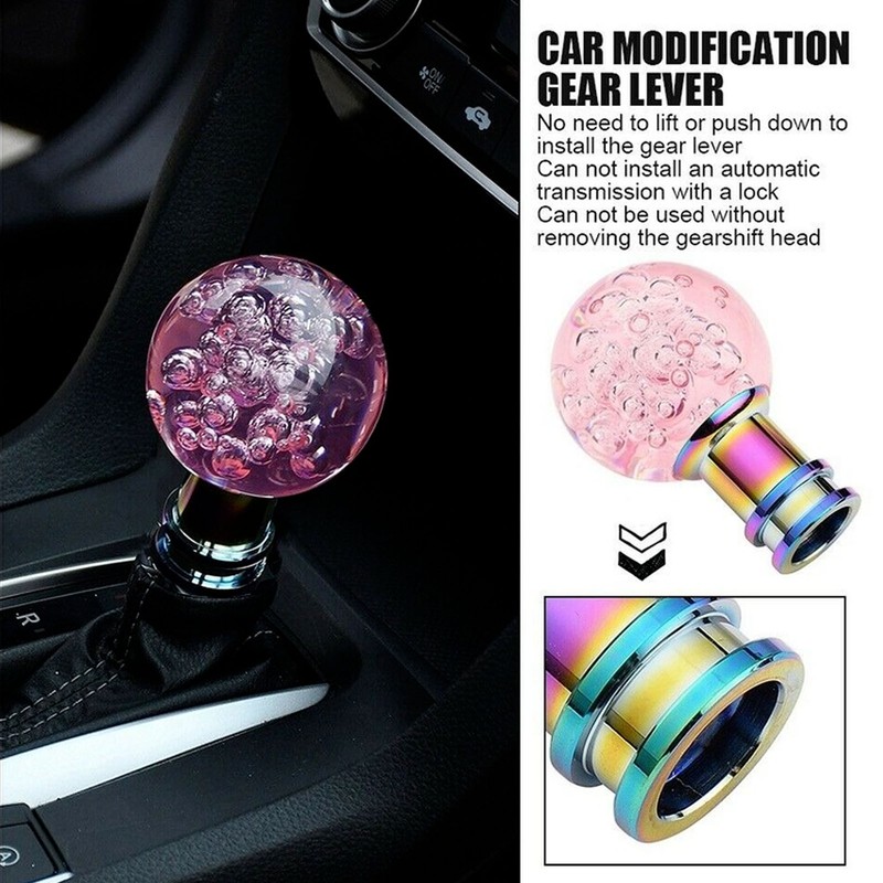 Manual Shift Knob Gear Stick Shifter Pink Crystal Bubble with 3 Threaded Adapters Universal