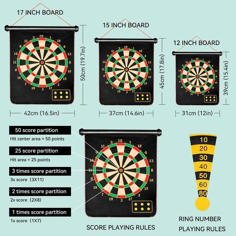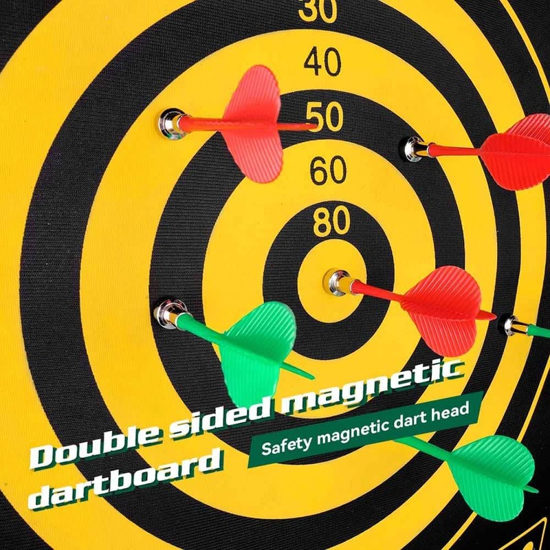 Very fun dartboard with magnetic play mode with two sets on each side of the dartboard. Brand: Gildarts. Model: Magnetic. This product consists of 1 magnetic dartboard and 6 darts.