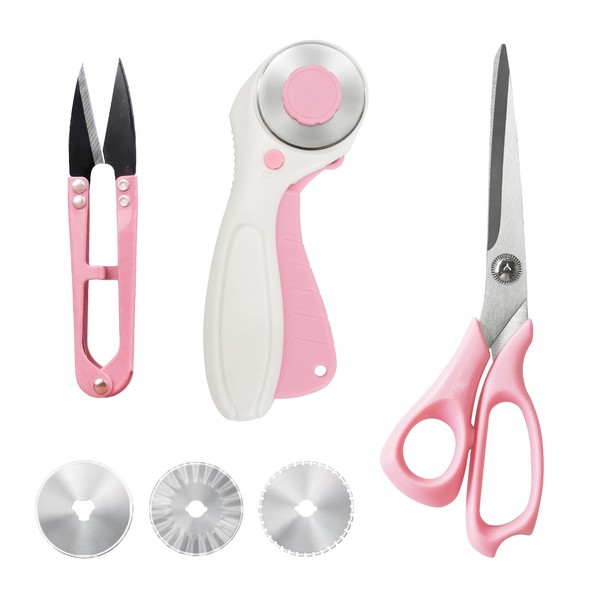 - 8.5in Left-Handed Scissors and 4.5in Thread Scissors, Rotary Cutter with 3pcs Extra Blades for Cutting Fabric