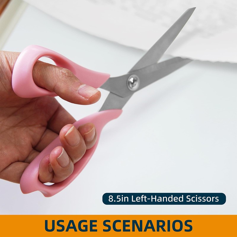 - Left handed scissors: The left blade positioned on top when opened, allowing left handed users to clearly see the cutting line