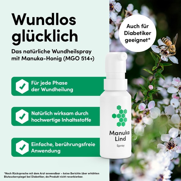 ManukaLind ManukaLind Wundheilspray 30ml - Nat??rlich wirksam mit Manuka-Honig MGO 514+ - F??r alle Wundheilungsphasen - Ideal f??r Reiseapotheke & Notfallset