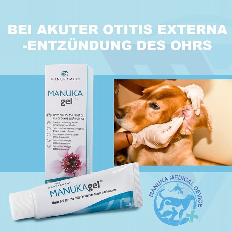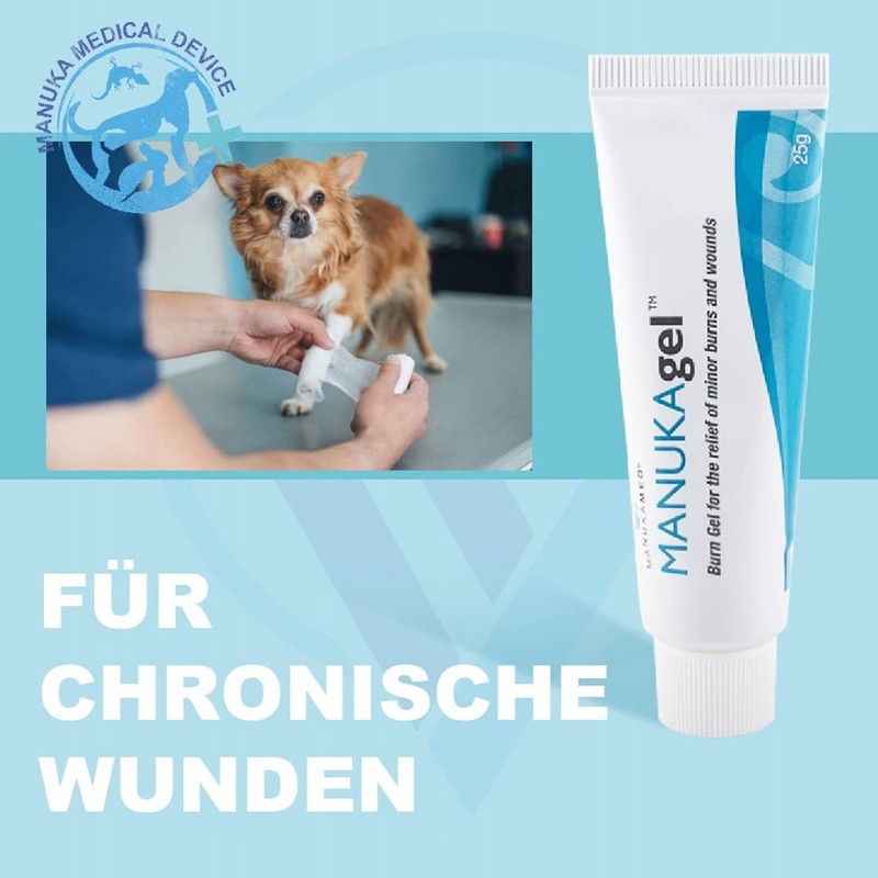 - Manuka Gel is 100% antibacterial honey, developed to treat wound care damaged skin in all animals. Contains Methylglyoxal MGO 560+. Can lower the pH of the wound and increase the activity of the plasmin. First aid clinically proven that significantly accelerates healing of wounds.