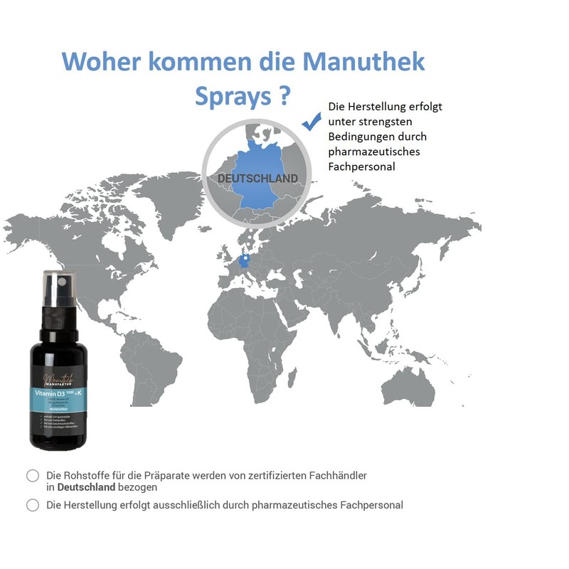 Manuthek Vitamin D3 K2 - Mundspray 1000IE hochbioaktiv - 210 Sprhst??en - Entwickelt in deutscher Apotheke - alkoholfrei geeignet fr Schwangere & Kinder - Alternative zu Vitamin D3 K2 Tropfen Tropfen