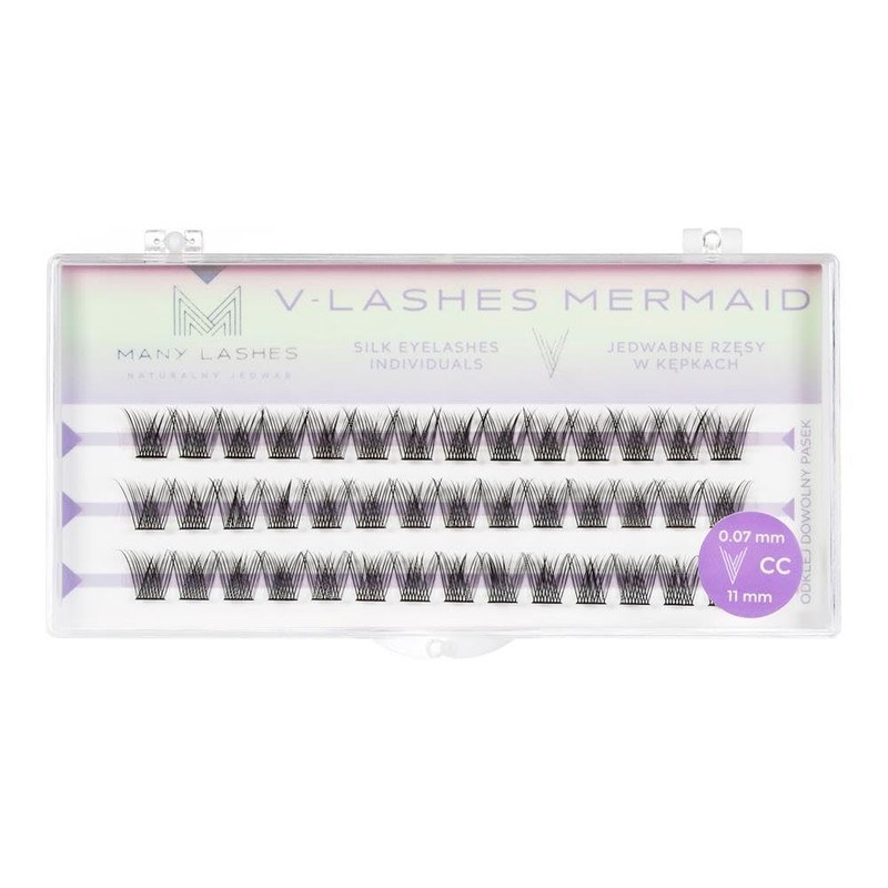 MANY BEAUTY False Eyelash Clusters "Mermaid" Pack of 42 - Individual Eyelash Extensions 8-18 mm - Cluster Lashes for Eyelash Extension - V-Braiding Artificial Eyelashes (CC, 11 mm)