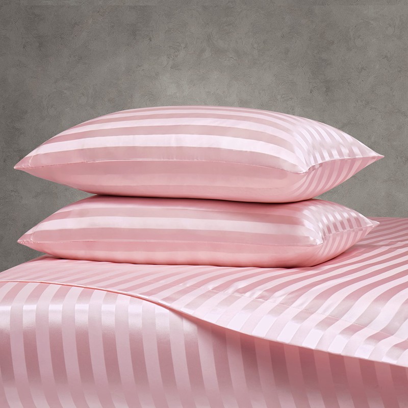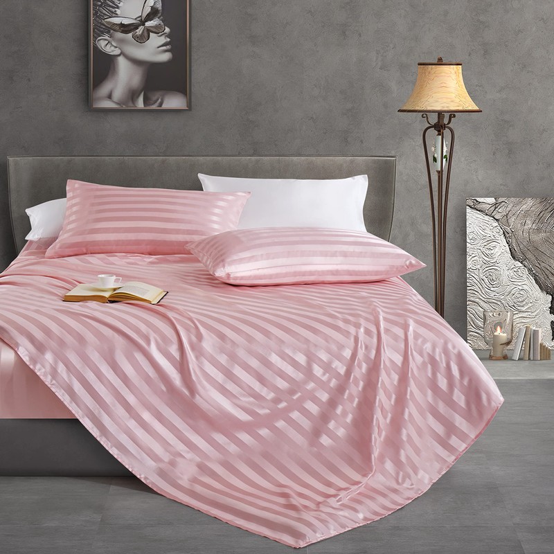 Manyshofu Blush Pink Satin Striped Sheets - 3Pcs Satin Sheets Twin Size, Cooling Silky Satin Bed Sheets Luxury Bedding Sheet Set(1 Satin Fitted Sheet, 1 Satin Flat Sheet, 1 Satin Pillow Cases)