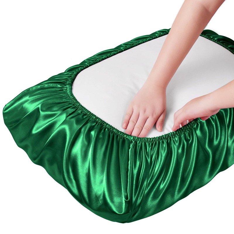 Manyshofu Satin Pillowcases for Hair Protection - 1Pcs Green Pillow Cases, Elastic Band Standard & Queen Satin Pillowcases Luxury Silky Pillow Cases Travel Pillow Covers