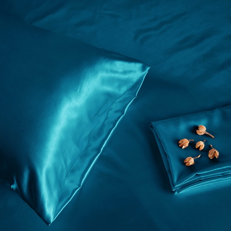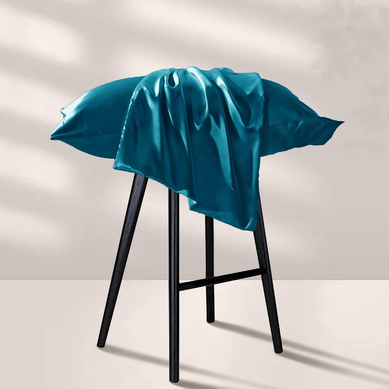 Manyshofu Teal Satin Pillowcase for Hair Protection- 2Pcs Standard Pillow Cases, Luxury & Silky Pillowcases 20x26 Pillow Covers with Envelope Closure
