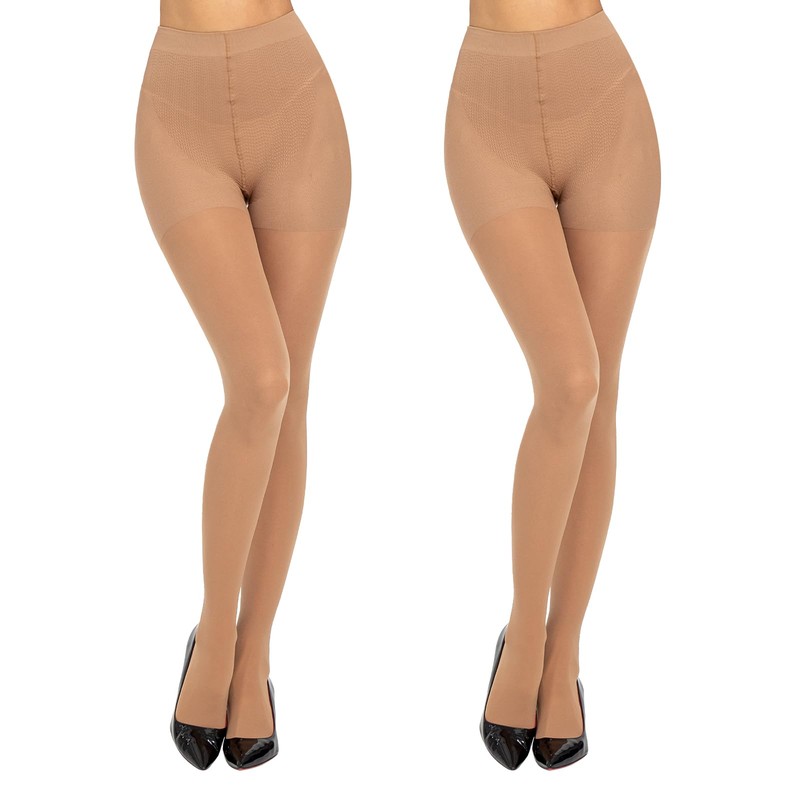 MANZI Women's Compression Tights 10-15 mm/Hg, Shape Tights Opaque with Tummy Control and Butt Lifting, Figure-Shaping Support Tights, 50 Denier, 2 Pairs, 2 pairs of natural