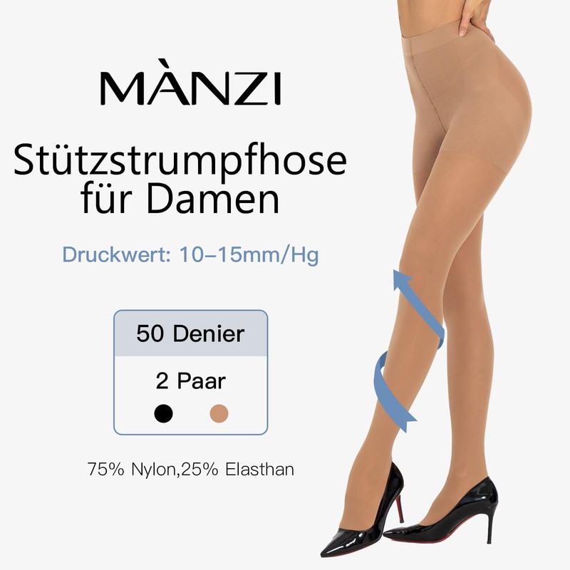 - Soft fabric: support tights 50 denier are made of 75% nylon and 25% elastane, the material is soft and comfortable and remains comfortable even after several washes