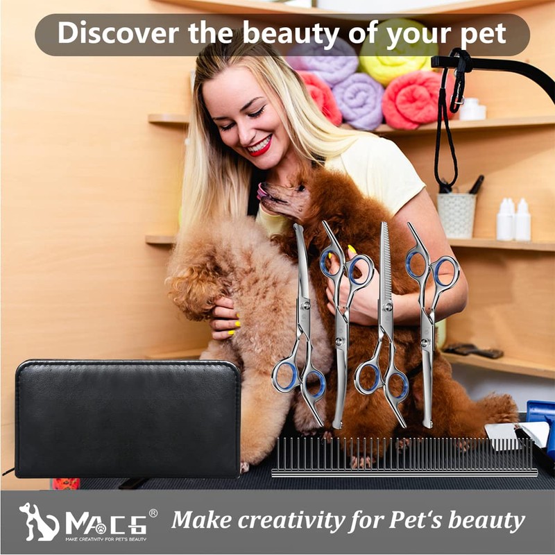 MAOCG Dog Grooming Scissors Set with Safety Round Tip, Titanium Coated Curved, Thinning and Straight Pet Grooming Scissors Kit for Dogs and Cats.