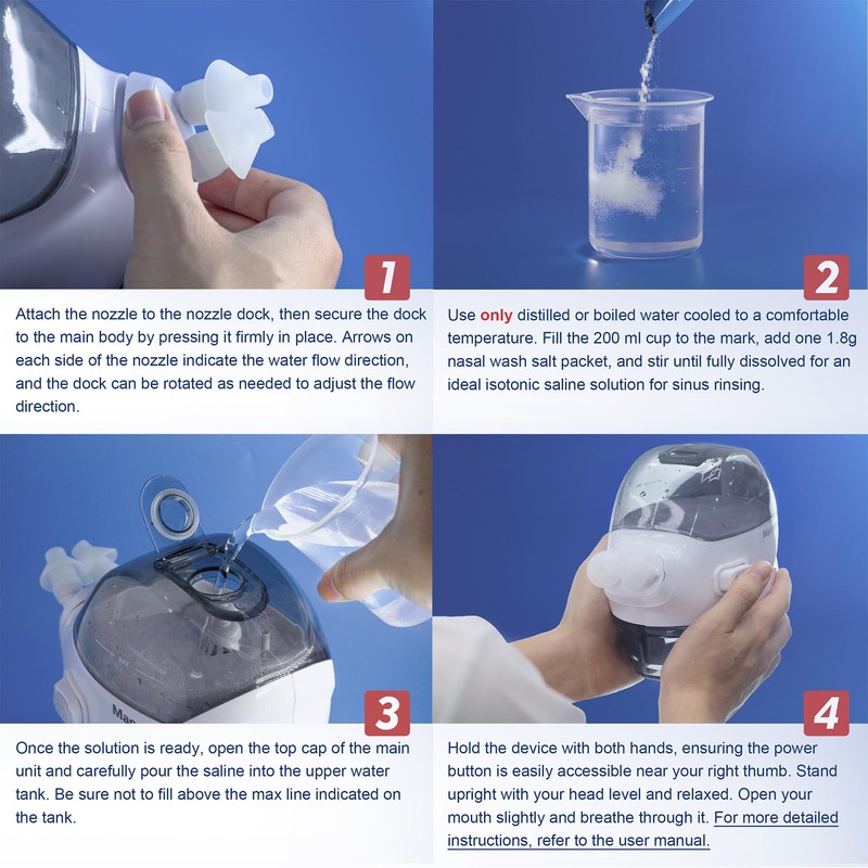 - Easy to Use: Simple setup with an intuitive interface for a smooth and hassle-free nasal rinse.