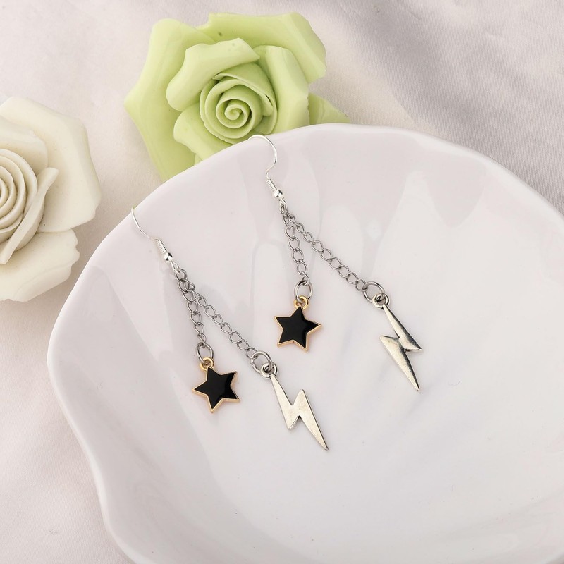 MAOFAED Musician Inspired Gift, Lightning And Black Star Dangle Earring for Fans, Music Lover Gift(lighting starCA)