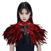MAOFENG Gothic Natural Feather Shawl Shrug Scarf Wrap Cape Victorian Collar for Halloween Cosplay Party Costume Accessories,Red