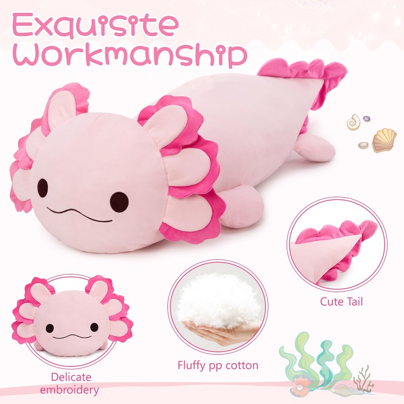 - 【Premium Skin-Friendly Fabric】 Crafted with ultra-soft short pile fabric, our giant axolotl plush delivers a marshmallow-like touch that’s gentle on sensitive skin. The lightweight, squishy stuffing ensures cloud-like comfort during naps, playtime, or stress-relief moments.