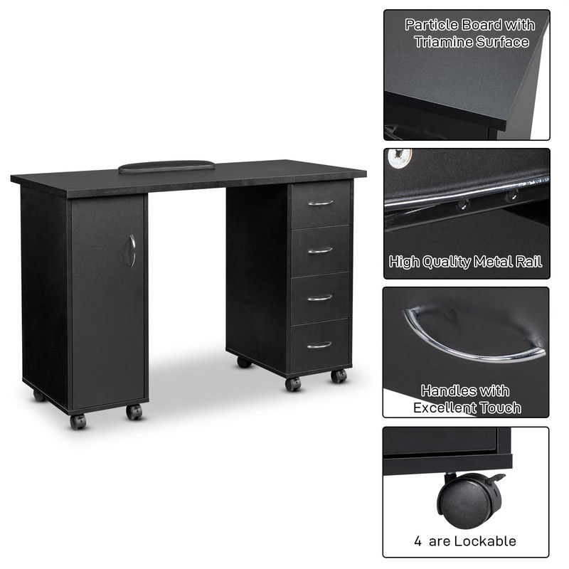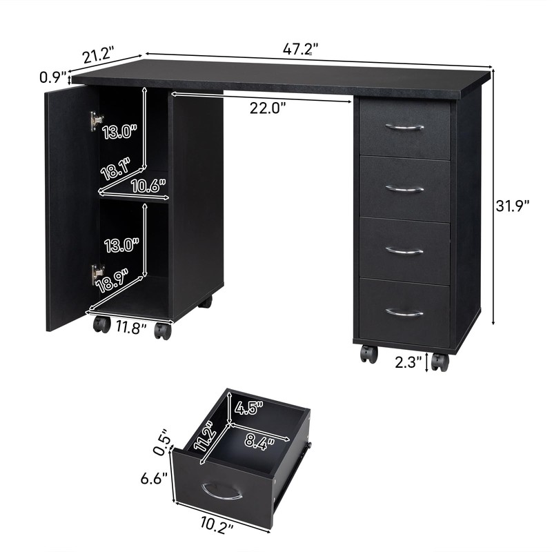 - Easy to Move : 8 rolling wheels are fitted to manicure table, includes 4 lockable wheels, the nail table has extraordinary flexibility and utility. The wheels enable you to move the nail desk easily in your salon or workshop. Lockable wheels provide you excellent stability during the nail work.