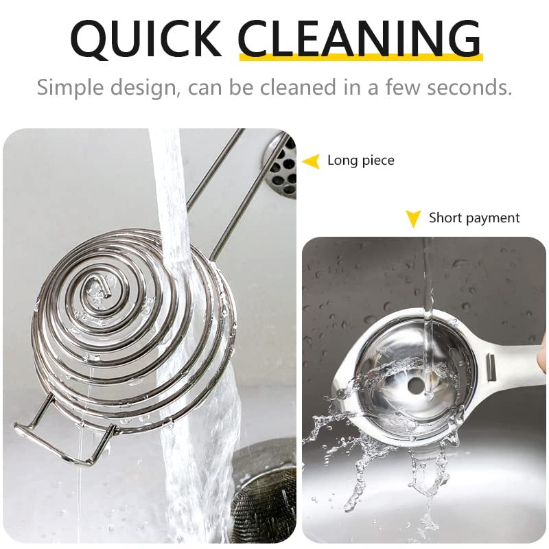 - Premium material: the egg separator is made of rust-proof 304 food grade stainless steel, which is safe, durable and easy to clean. Cleaning can be easily put in the dishwasher.