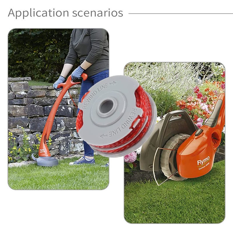 - 【Autofeed System Replacement Spool】 The string trimmer replacement spool is compatible with the Flymo lawn mower, and can use centrifugal force to transport the trimming thread as needed, effectively reducing the tedious work of manually winding the spool.
