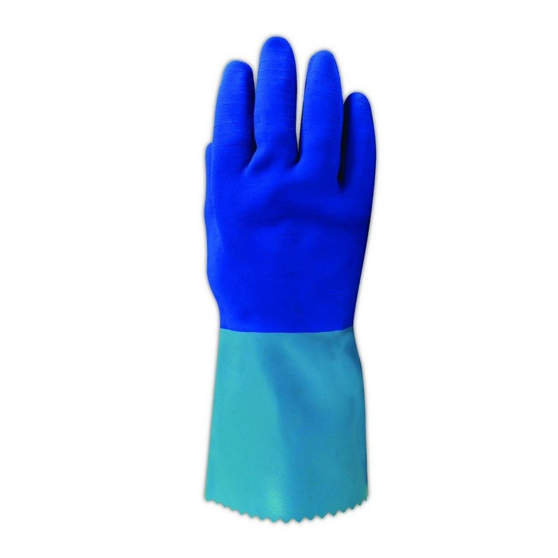 MAPA LL-301-M MAPA Blue-Grip LL301 Etched Finish Latex Gloves w/Pinked Cuff, Blue, Medium (Pack of 12)